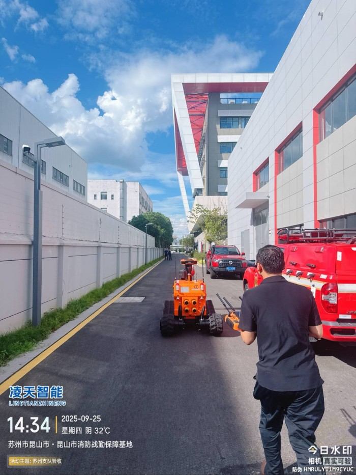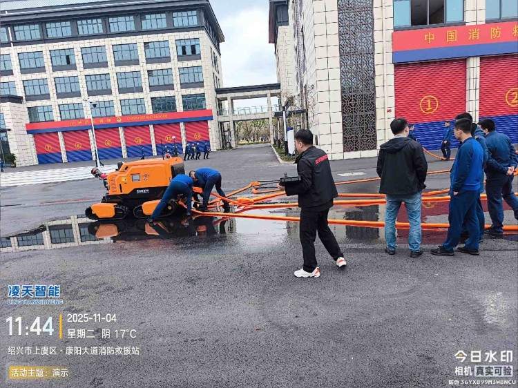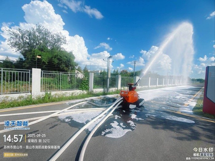 遥控器按钮能远程调节,自由控制行驶速度和水炮,满足现场实际需要。