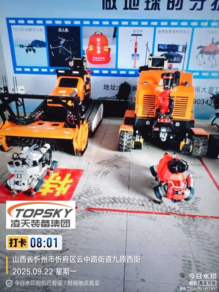 RXR-M120GD 全地形消防灭火机器人采用柴油发动机为动力源,使用液压传动系统驱动液压马达行走,应用于扑救地形复杂、人员和常规消防灭火机器人无法靠近的火灾现场,也可用于地铁车站与隧道火灾、大跨度、大空间场所火灾、石化油库与炼制厂火灾、地下设施与货场火灾以及危险火灾目标的进攻与掩护。本产品具备远程操控、全景显示等功能,同时具备超高的越野性能;集成式液压刹车装置,可有效驻车刹车,防止整机溜车。