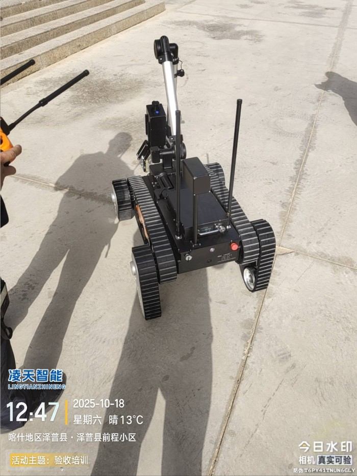 排爆机器人主要是用来处理爆炸物相关工作的排爆式机器人,也可用于侦察人难以达到的地形的一种机器人。7自由度排爆机械手能实现不同角度旋转,近端最大可抓举40KG的重物,小手爪可抓取5KG重物,机械臂可装载爆炸物销毁器,可现场摧毁爆炸物,履带底盘+前后双摆臂结构,能适应各种地形快速作战部署。