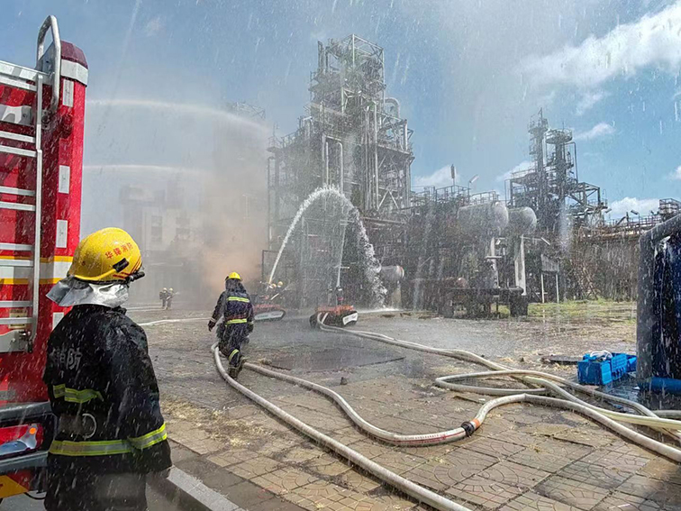 消防炮喷射流量可达120L/s,水射程大于95m,泡沫射程大于90m