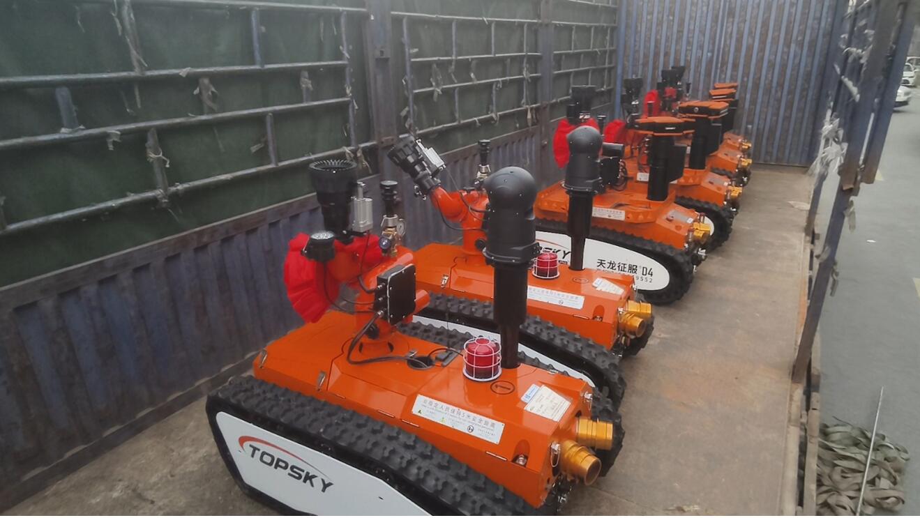 携带多种检测、监控传感检测装置,对火灾场所实施远程实时监控,进行火灾扑灭。