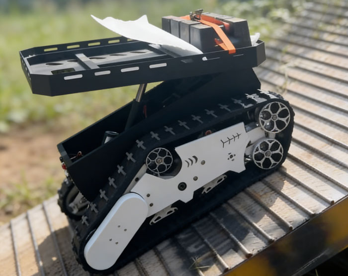 底盘采用橡胶横纹履带与先进避震系统,搭配轻量化一体压铸铝轮及耐用材质,可实现常规爬坡、极限爬坡,适配多地形穿行,保障复杂环境稳定运行。