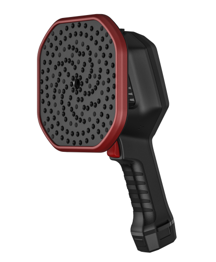 本产品是一款手持式的工业声学成像仪,广泛应用于电力局放,带压或真空条件下的气体泄漏检测、气密性检测、设备异响定位等多种场景。仪器利用麦克风阵列波束形成技术获取声源分布数据,并配合高清摄像头实时采集视频画面,通过将声源分布数据同视频图像进行声像融合,把变化的声源动态的呈现在显示屏上。 可以帮助现场巡检人员快速定位故障,提供处置依据。