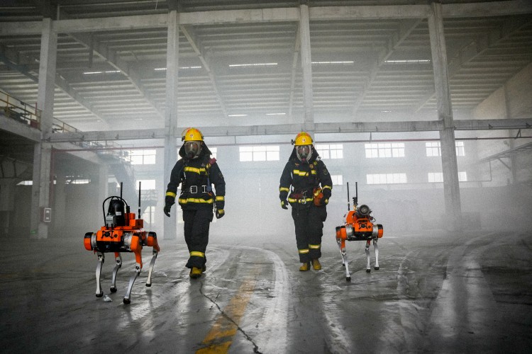使用场景:小型轻量化仿生结构设计,外形小巧灵动,复刻犬类行走姿态,配备高精度关节驱动与智能平衡算法,可灵活实现行走、转弯、爬坡、越障等动作,轻松穿越瓦砾堆、狭窄通道、楼梯、草地等非结构化地形,即便遭遇外力碰撞或倾倒,也能快速自主站立,可在浓烟、高温、有毒气体等恶劣场景中稳定运行,突破传统轮式、履带式装备的地形限制