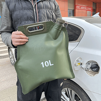 产品是一款便携式油囊,整体设计轻便,结构合理,便于日常携带与移动使用。该产品专为各类液体(如燃油、润滑油、水等)的安全转运与临时储存而设计,结构简单实用,可满足多种场景下的小容量液体运输需求,具有抗老化、耐磨耐寒等特点。