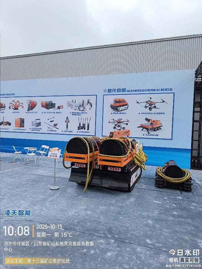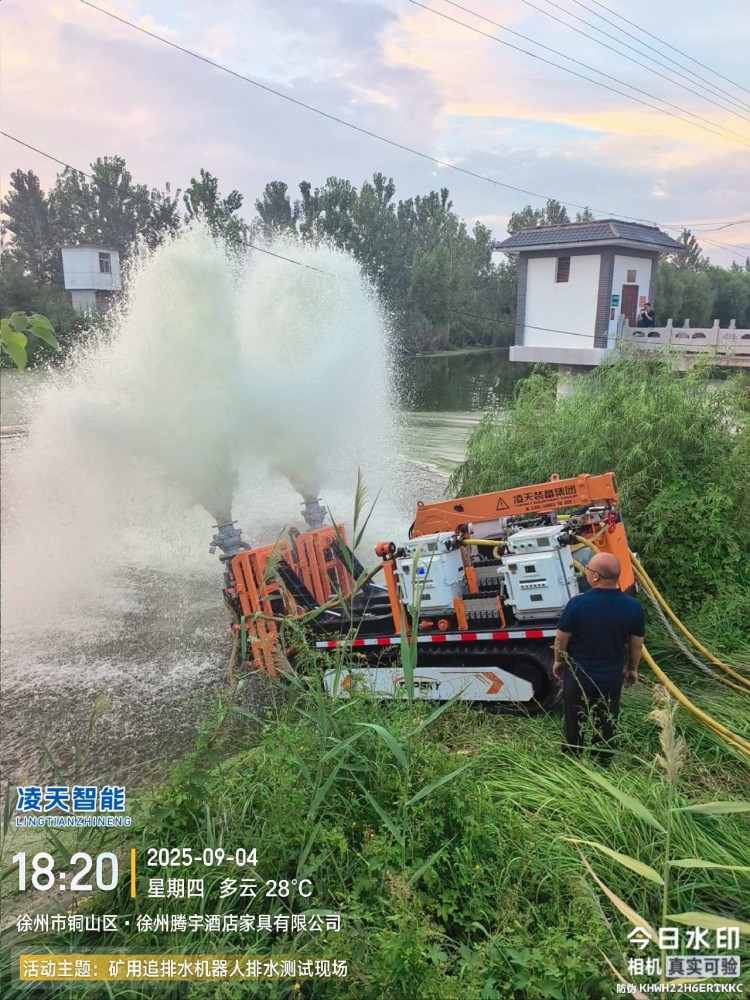 本产品严格符合煤矿安全标准,适用于一类防爆区域作业;主要应用于矿洞透水事故应急救援等需快速部署防爆排水泵的紧急场景。具备自主行走和吊装能力,可直接抵达作业现场,有效解决了大型装备难以进入区域需人工搬运的问题,并可协助运输和吊装其他抢险物资。采用遥控操作,确保人员安全无虞。排水流量大、扬程高,电泵能够长时间无间断排水,快速部署到位,大幅节省人力物力。此外,该产品还能适应多种环境和复杂地形,显著提升抢险人员作业安全系数,有效减轻其劳动强度。同时,也可用于有防爆要求的非矿井环境排水作业。