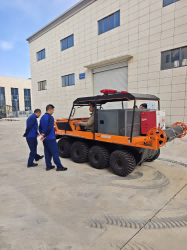 在复杂恶劣的地形条件和自然环境下,水陆两栖全地形车可以让搜救队员和携带的救援装备快速到达救援现场,减少徒步带来提供消耗,完成最后一公里最好五分钟紧急救援任务。水陆两栖全地形车可配备点到绞盘、救援担架组件、探照灯、警示灯、警报器、脱钩、破拆工具等装备, 给救援团队提供救援保障,更安全的解救伤员和疏散群众。