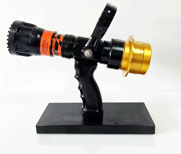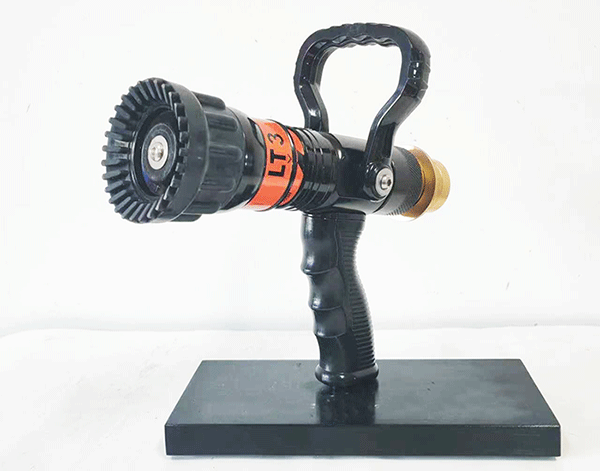 水枪整体造型美观,短小精悍,经定制改造后流量固定,手感较轻,易于操作,能减轻消防员的作战训练强度,确保