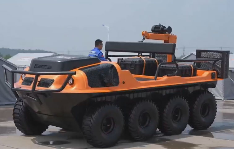 全地形:上山下水,爬坡过坎,泥潭沼泽,适合所有救援场景,最大可以乘坐6人。