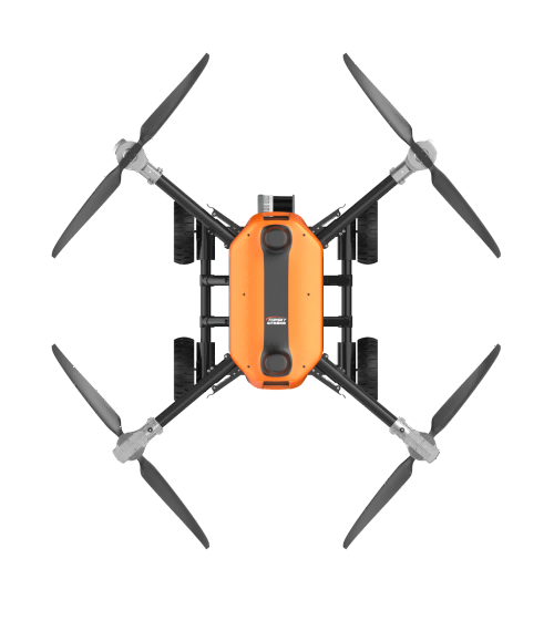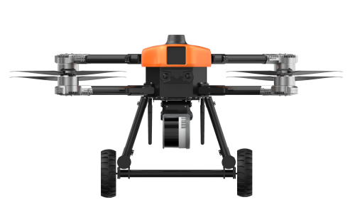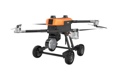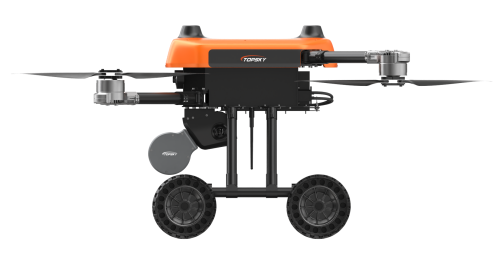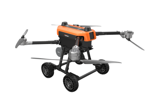 本无人机为北京凌天智能装备集团研发的陆空两栖三维侦测建模无人机,采用四旋翼机身设计,载重大,续航长,并且机体折叠标准化负载接口。同时,该无人机具备陆空两栖功能,可以在地面行驶。